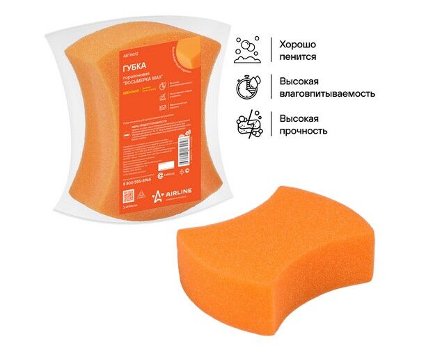 Губка поролоновая "Восьмерка MAX" (20*15,5*6,5см) (пакет с европодвесом) (ABTN013)