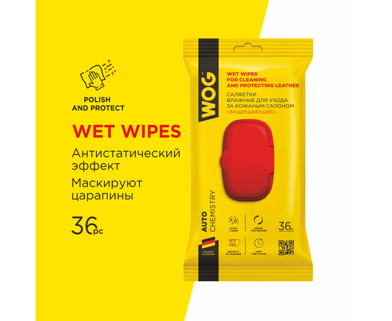 Салфетки влажные защищающие для ухода за кожаным салоном 36 шт
