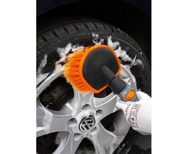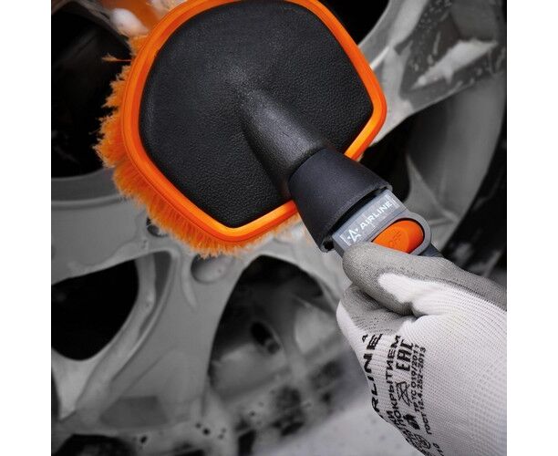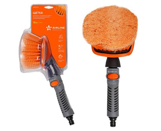 Щетка для мытья с насадкой для шланга, мягкой распушенн. щетиной, кнопкой подачи воды (35 см) (ABJN0