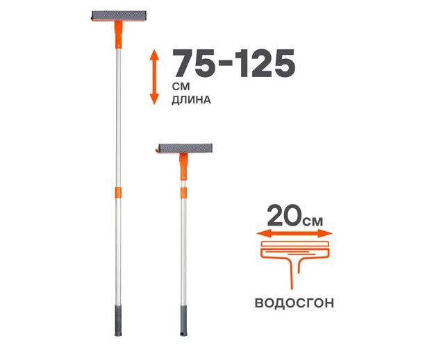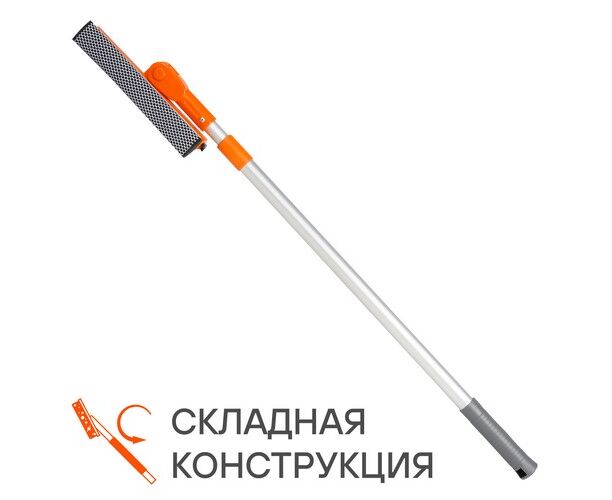Щетка для мытья стекол с телескопич. ручкой, поролоном и водосгоном складная (75-125см) (ABGN007)