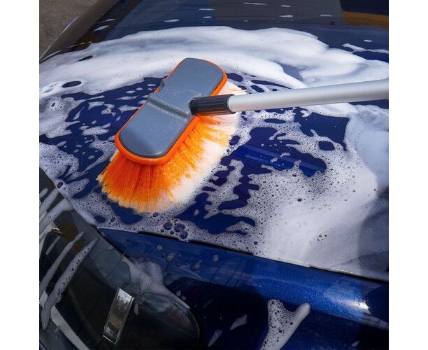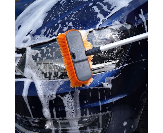 Данная модель швабры от AIRLINE предназначена исключительно для мытья машин. Длина рукоятки швабры составляет 150 см, а длина щетки составляет 20 см. Щетка имеет мягкую щетину, которая деликатно очищает грязь с поверхности автомобиля, не царапая ее. Для более тщательной уборки предусмотрена возможность установки шланга для мытья автомобиля. Ворс щетки окрашен в синий цвет, а рукоятка в фирменные оранжево-черные оттенки.