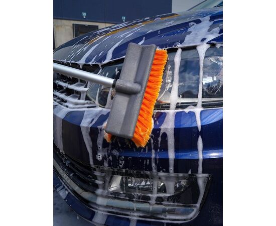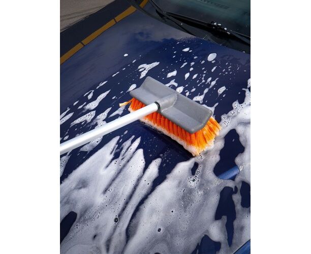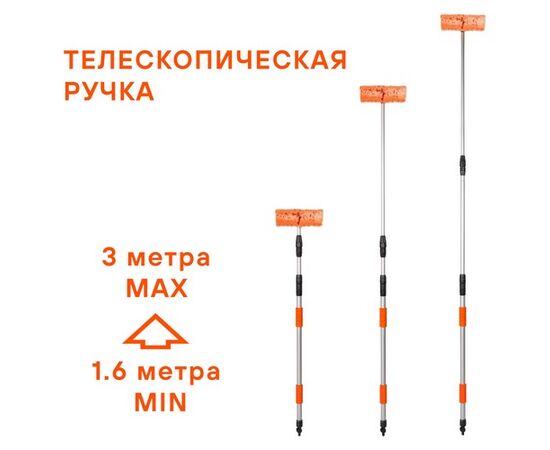 Данная модель швабры является отличным решением для удаления пыли и грязи с пола и других плоских поверхностей. Длина ручки швабры составляет 300 см. Ручка легко складывается с помощью специального механизма, и швабра уменьшается в размерах в несколько раз. Рабочая поверхность щетки оснащена распушенной щетиной с длинным ворсом оранжевого цвета. Щетка отсоединяется от рукоятки швабры и появляется возможность присоединения к основанию изделия шланга.