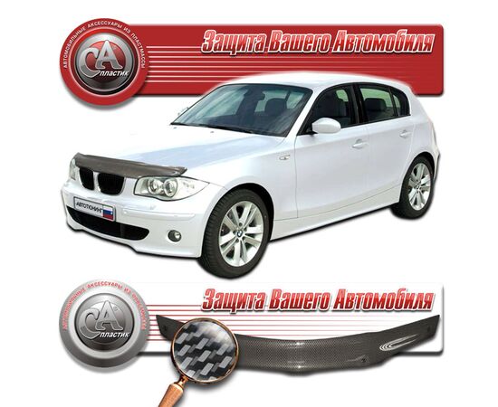 Дефлектор капота BMW 1 Series (Шелкография "карбон" серебро)