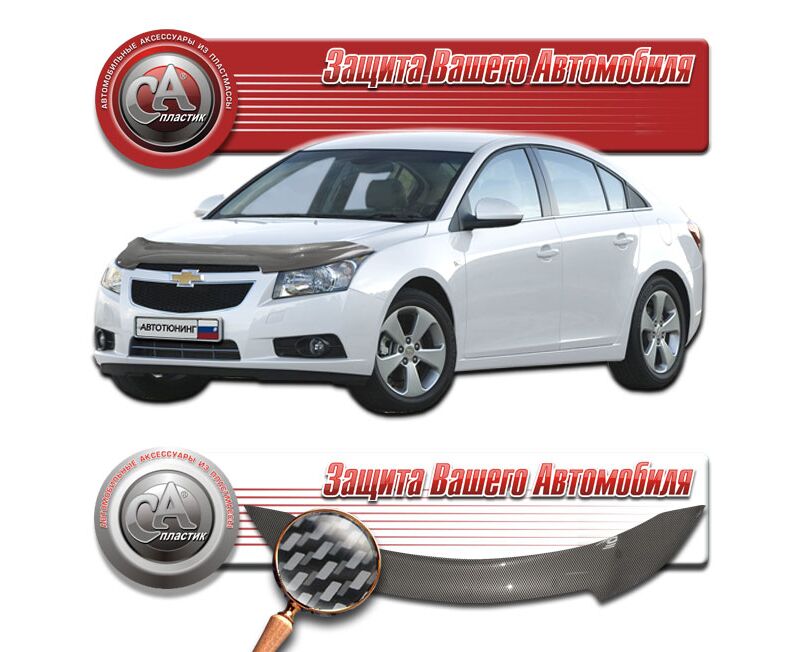 Дефлектор капота Chevrolet Cruze седан (Шелкография "карбон" серебро)