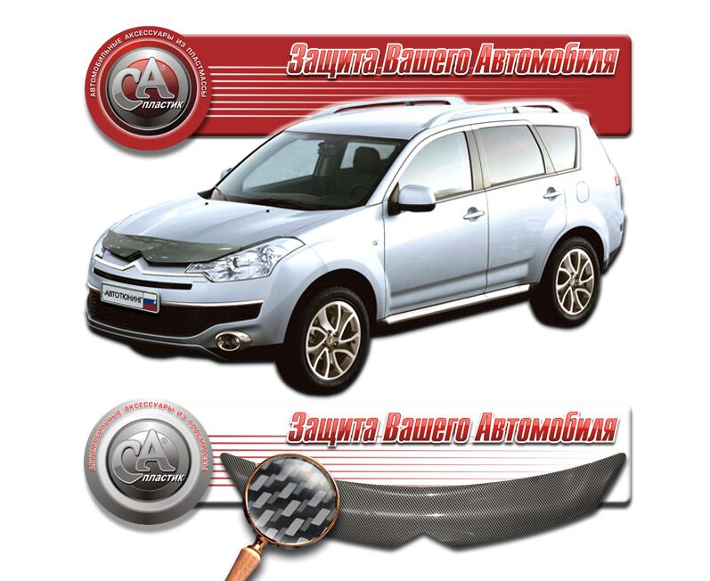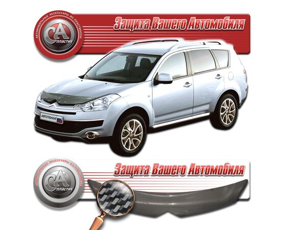 Дефлектор капота Citroen C-Crosser I поколение, джип/suv 5 дв. (Шелкография "карбон" серебро)