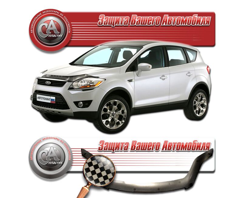Дефлектор капота Ford Kuga (Шелкография черная)