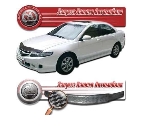 Дефлектор капота Honda Accord (Шелкография "карбон" серебро)