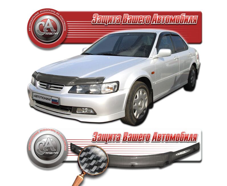 Дефлектор капота Honda Accord (Шелкография "карбон" серебро)