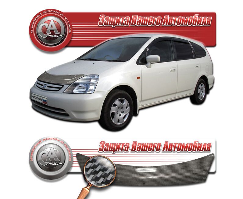 Дефлектор капота Honda Stream (Шелкография "карбон" серебро)