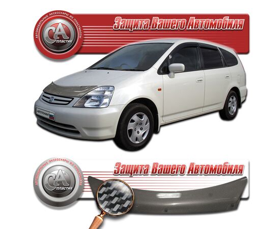 Дефлектор капота Honda Stream (Шелкография "карбон" серебро)
