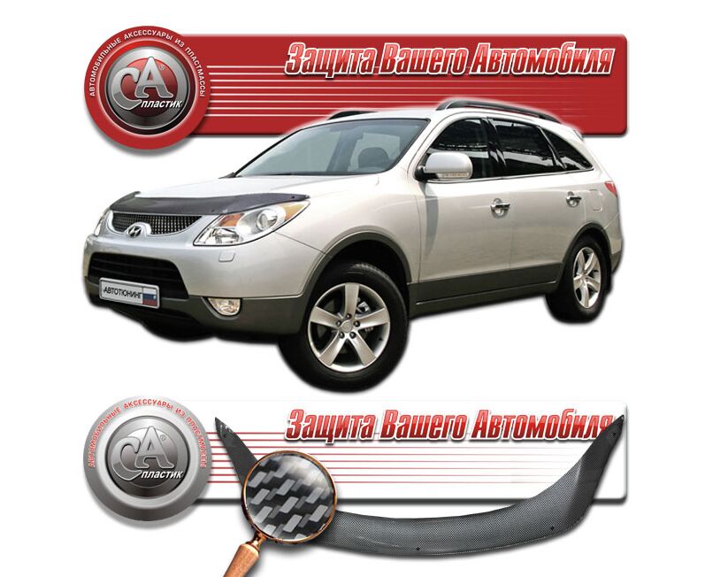 Дефлектор капота Hyundai ix55 (Шелкография "карбон" серебро)
