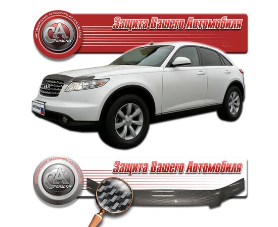 Дефлектор капота Infiniti FX35 (Шелкография "карбон" серебро)