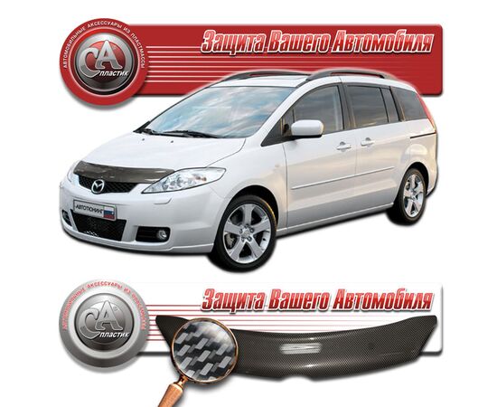 Дефлектор капота Mazda 5 (Шелкография "карбон" серебро)
