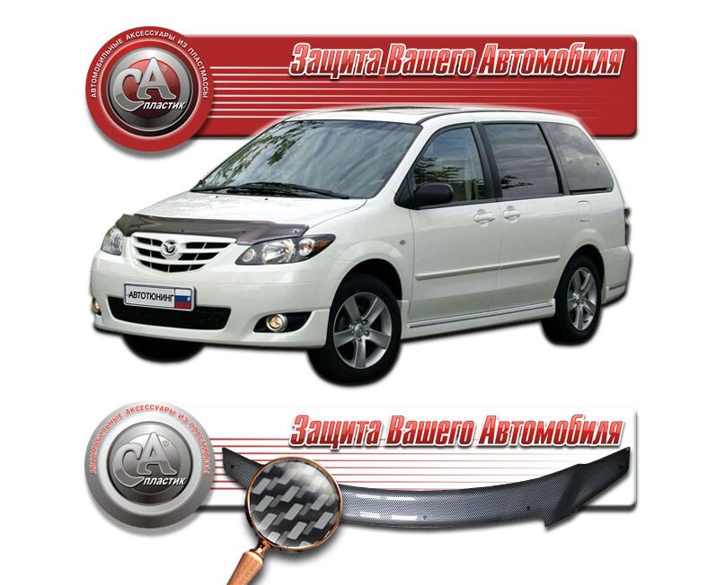 Дефлектор капота Mazda MPV (Шелкография "карбон" серебро)