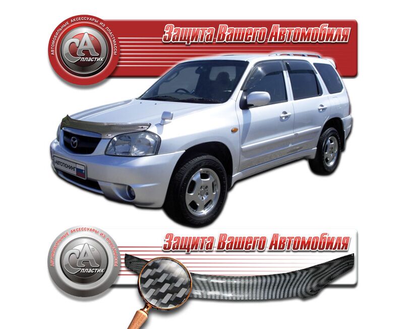 Дефлектор капота Mazda Tribute (Шелкография "карбон" серебро)
