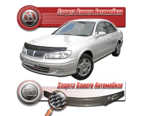 Дефлектор капота Nissan Bluebird Sylphy (Шелкография "карбон" серебро)