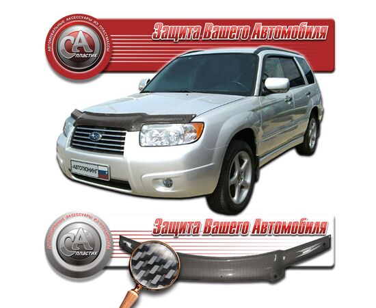 Дефлектор капота Subaru Forester (Шелкография "карбон" серебро)