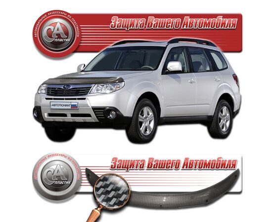 Дефлектор капота Subaru Forester (Шелкография "карбон" серебро)