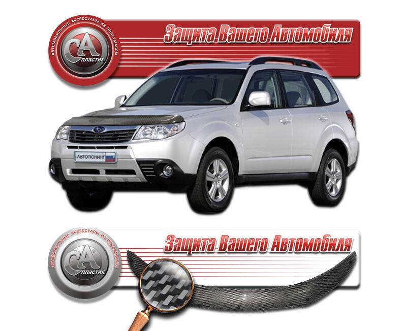 Дефлектор капота Subaru Forester (Шелкография "карбон" серебро)
