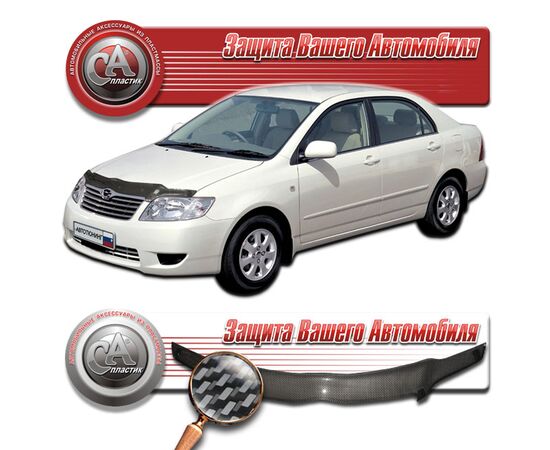 Дефлектор капота Toyota Corolla седан (Шелкография "карбон" серебро)