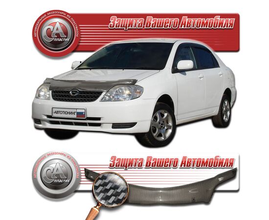 Дефлектор капота Toyota Corolla (Шелкография "карбон" серебро)