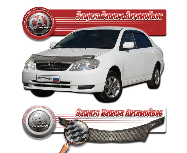 Дефлектор капота Toyota Corolla (Шелкография "карбон" серебро)