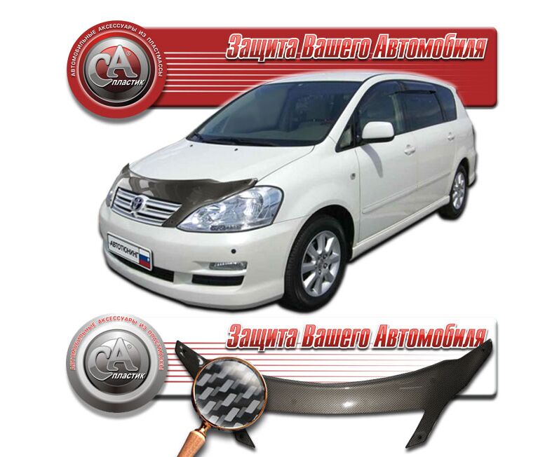 Дефлектор капота Toyota Ipsum (Шелкография "карбон" серебро)
