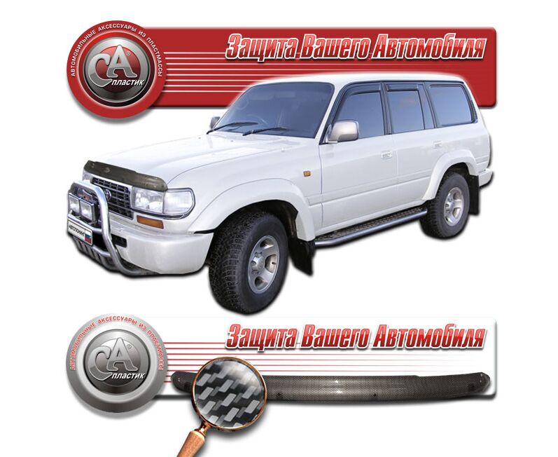 Дефлектор капота Toyota Land Cruiser 80 (Шелкография "карбон" серебро)
