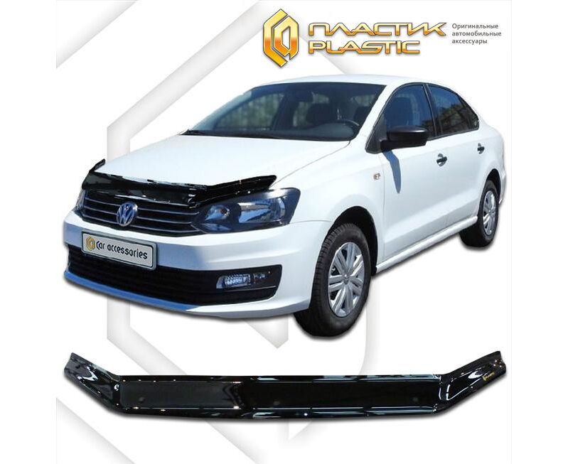Дефлектор капота Volkswagen Polo V поколение, V поколение рестайлинг, седан, рынок России (Classic черный)