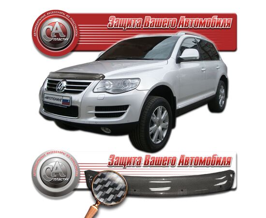 Дефлектор капота Volkswagen Touareg (Шелкография "карбон" серебро)