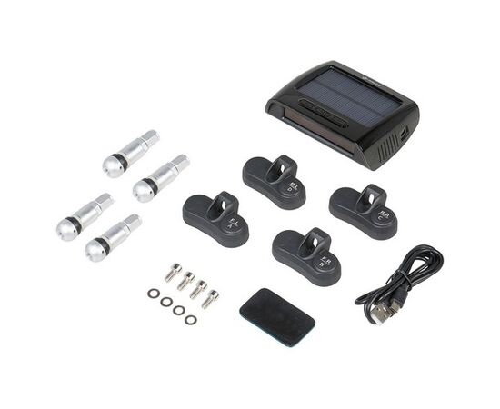 Система представляет из себя комплект из 4х датчиков и приёмного модуля с цветным ЖК дисплеем. Датчики монтируются вместо штатного вентиля колеса автомобиля, измеряют давление и температуру воздуха в шине и передают информацию о их значениях по радиоканалу на дисплей. Приёмный модуль принимает информацию о давлении в шинах и отображает значения давления в шинах на встроенном ЖК индикаторе. Приёмный модуль питается от встроенного литий-полимерного аккумулятора, который подзаряжается от встроенной солнечной батареи или гнезда microUSB.
