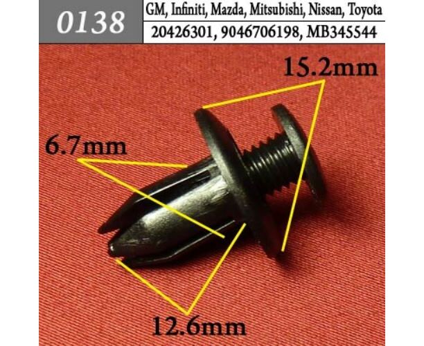 Пластиковый крепеж бампер, подкрылок GM, Infiniti, Lexus, Mazda, Mitsubishi, Nissan, Toyota