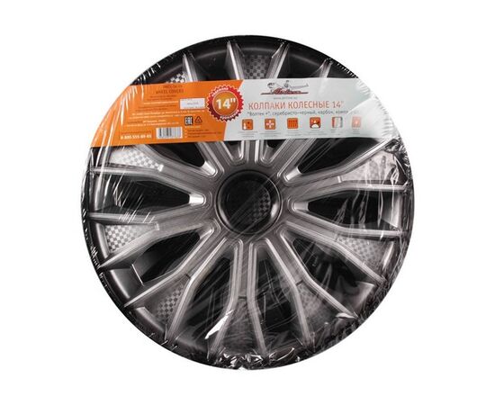 Колпаки колесные 14" "Волтек +", серебристо-черный, карбон, компл. 2 шт. (AWCC-14-15)
