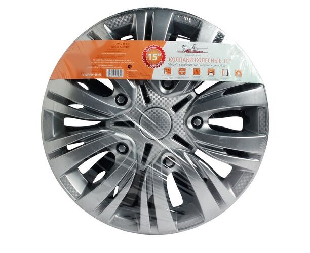 Колпаки колесные 15" "Лион", серебристый, карбон, компл. 2 шт. (AWCC-15-01)