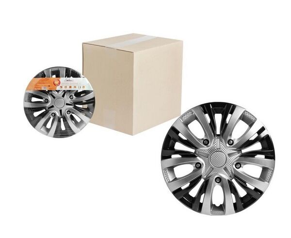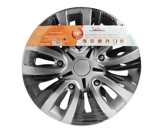Колпаки колесные 15" "Лион Т", серебристый/черный, карбон, компл. 2 шт. (AWCC-15-05)