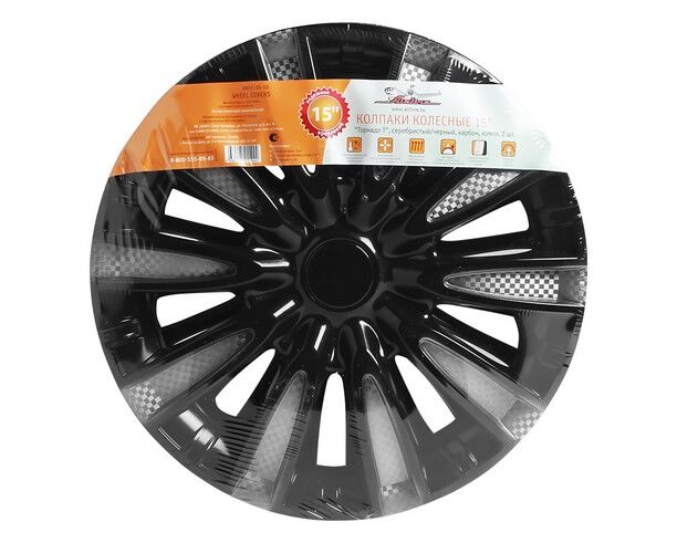 Колпаки колесные 15" "Торнадо Т", серебристый/черный, карбон, компл. 2 шт. (AWCC-15-10)