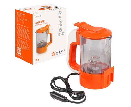 Чайник автомобильный 12В прозрачный/оранжевый пластик (ABK-12-03)