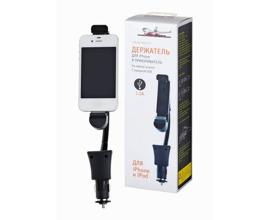 Держатель для iPhone в прикуриватель на гибкой штанге с зарядкой (AMS-F-03)