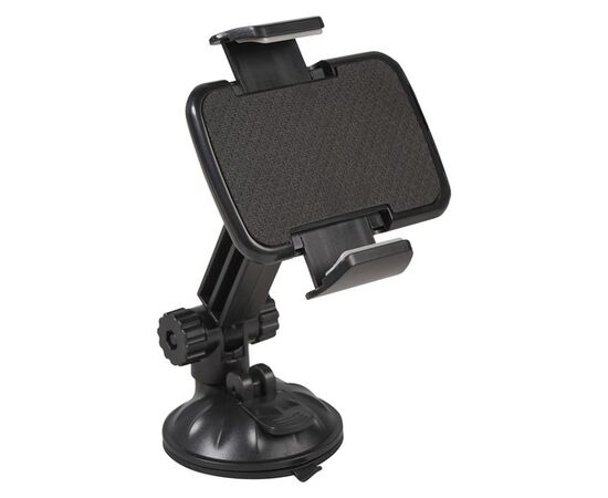 Универсальный держатель – это оптимальное решение для автомобилиста при необходимости постоянной фиксации технического устройства в поле зрения водителя. Изделие устанавливается на лобовое стекло автомобиля. Удерживать устройство помогает короткая пластмассовая штанга, с регулируемым углом наклона.