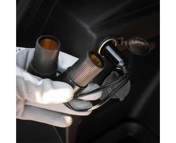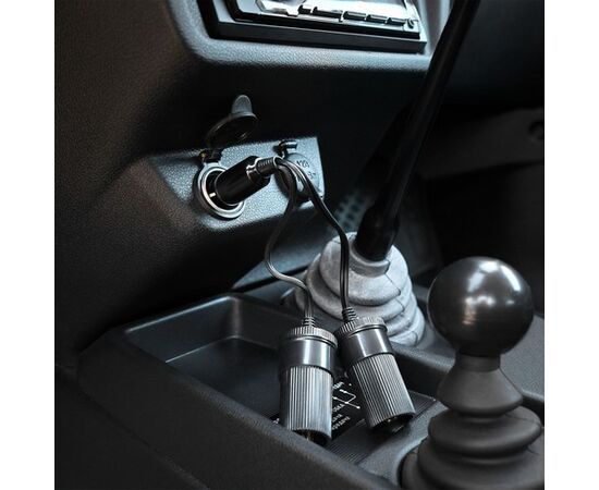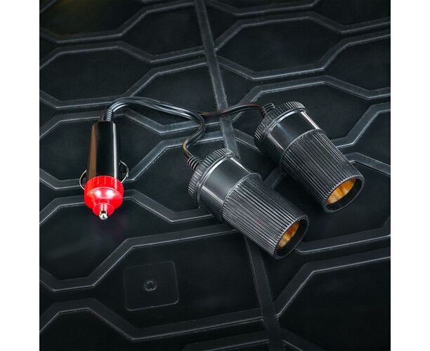 Изделие позволяет подсоединить к бортовой сети транспортного средства единовременно два устройства. Для удобства при эксплуатации кабель изделия был выполнен в виде растягивающегося витого шнура с прорезиненной основой. Корпус изделия изготовлен из пластика черного цвета. Выходной ток разветвителя равен 5А.