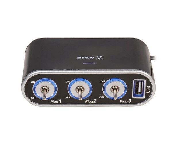 Прикуриватель-разветвитель 3 гнезда 5А + USB 1A, с выключателями нагрузки (ASP-3S-15)