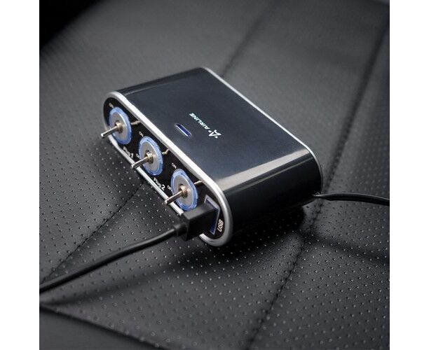 Разветвитель-прикуриватель позволяет увеличить число подключаемых устройств к бортовой сети автомобиля. Данная модель разветвителя позволяет подключить до 4-х устройств различного назначения. Преимуществом разветвителя является наличие индикатора нагрузки, который предостерегает устройство от возможной поломки. Суммарная мощность потребителей составляет 60 Вт.
