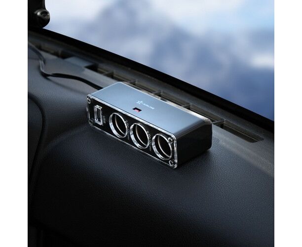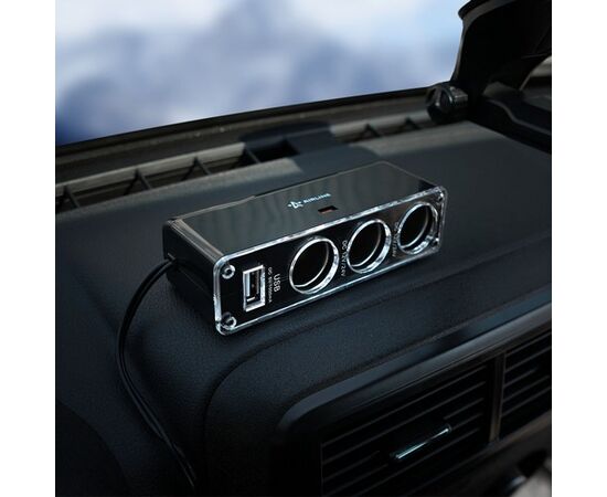 Разветвитель прикуривателя на 3 гнезда + USB, черный. Корпус прикуривателя имеет плоскую прямоугольную форму и окрашен в цвет серебристого металлика с оранжевой вставкой на фронтовой части изделия. Три гнезда прикуривателя, а также USB-порт дают возможность подключать к разветвителю сразу несколько электрических приборов. Для полноценного функционирования изделия и предотвращения поломок суммарная мощность подключенной техники не должна превышать границу в 60Вт.