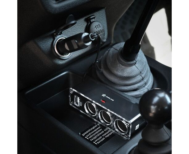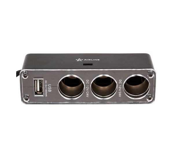 Прикуриватель-разветвитель 3 гнезда + USB (черный) (ASP-3U-07)