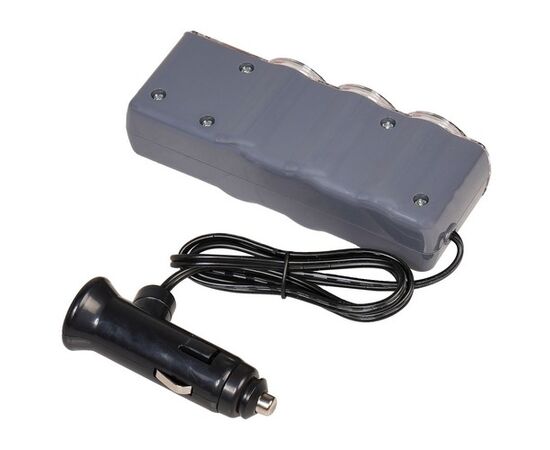 Разветвитель прикуривателя на 3 гнезда + USB, оранжевый. Разветвитель прикуривателя для использования в автомобиле представляет собой металлический блок с тремя дополнительными портами и USB-выходом. При эксплуатации устройства запрещено превышать допустимую мощность в 60Вт.