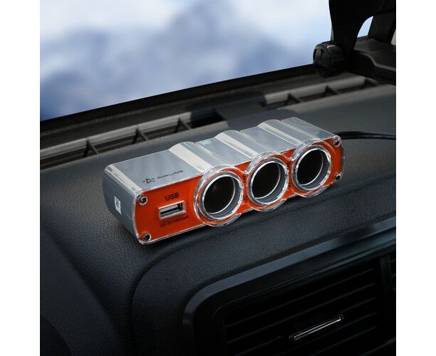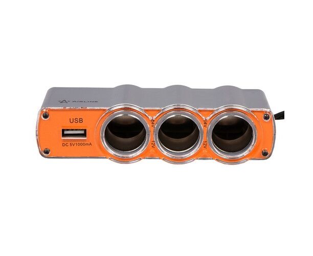 Прикуриватель-разветвитель 3 гнезда + USB (оранжевый) (ASP-3U-03)