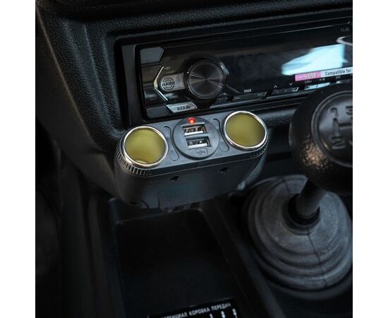 Прикуриватель-разветвитель трансформер 2 гнезда + 2USB, штекер-фиксатор (ASP-2TU-08)