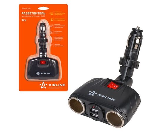 Модель разветвителя трансформера из серии AIRLINE оборудована двумя USB и двумя гнездами прикуривателя. Усовершенствованный фиксатор изделия позволяет регулировать угол наклона устройства при эксплуатации. Универсальный дизайн прибора предоставляет возможность установить его в салоне любого авто.