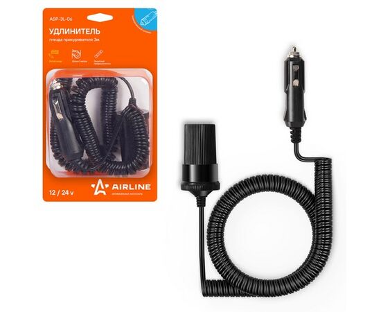 Прикуриватель-удлинитель с витым шнуром 3 м (ASP-3L-06)