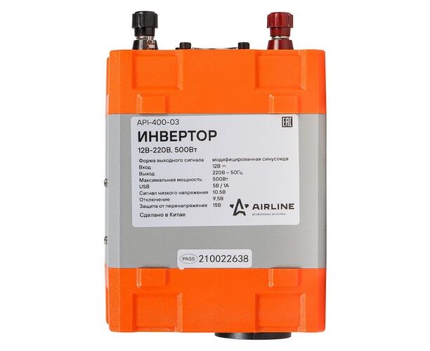 Инвертор 12В-220В, 500 Вт (API-400-03)